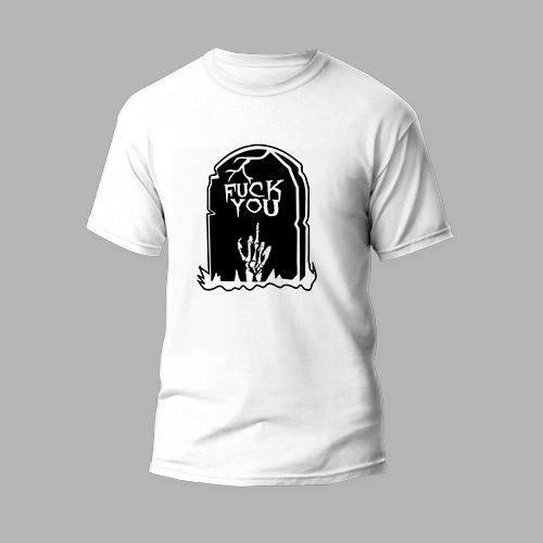 white round neck t-shirt fuck you design