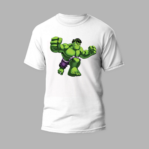 white round neck t-shirt hulk design