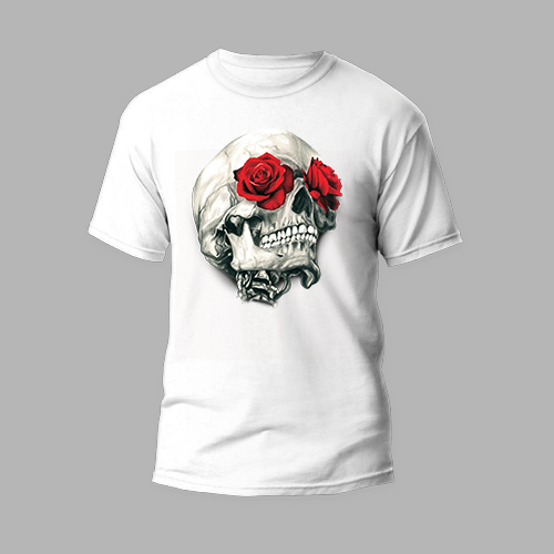 white round neckt-shirt with rose skull 2 design